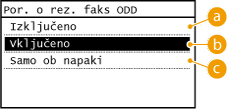 Izberite, če naj se Poročilo o rezultatu ODD natisne le, če pride pri pošiljanju do napake.
