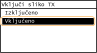 Če izberete <Vključeno> ali <Samo ob napaki>, se lahko v poročilu natisne tudi del faksa. Tapnite <Vključi sliko TX> za <Vključeno>.