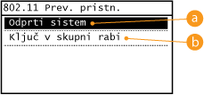 ![]() <Odprti sistem>Nastavi odprto overjanje sistema, ki se imenuje tudi »odprto overjanje«.