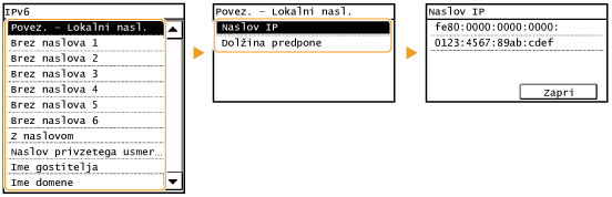 . Pritisnite <Omrežni podatki> <Metoda omrežne povezave> in izberite nastavitev, ki si jo želite ogledati. |