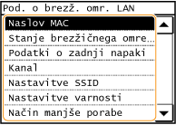 ![]() <Stanje brezžičnega omrežja LAN> in <Podatki o zadnji napaki> si lahko ogledate z gumbom
