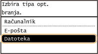 Konfiguriranje naprave za skeniranje v skupne mape Razpoložljivi prejemniki skupnih map so omejeni na prejemnike, ki so registrirani v imeniku. Če želite določiti cilj z imenikom, morate pred tem registrirati cilje za skupne mape.