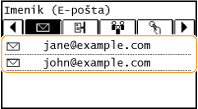 Z imenikom lahko izbirate prejemnike tako, da jih izberete s seznama registriranih prejemnikov ali iščete po imenu prejemnika.