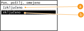 Preprečuje določitev prejemnikov iz zapisov prenosov. Uporaba te omejitve prepreči izbiranje prejemnikov iz zapisov prenosov za možnosti »Pošlji faks«, »Skeniraj in pošlji po e-pošti« in »Skeniraj in shrani v skupno mapo«.