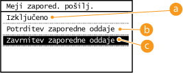 Izberite <Potrditev zaporedne oddaje> ali <Zavrnitev zaporedne oddaje>.