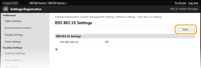 Preverjanje pristnosti IEEE 802.1X lahko omogočite ali onemogočite z izbiro <Meni> na zaslonu <Domov>. Nastavitve IEEE 802.1X