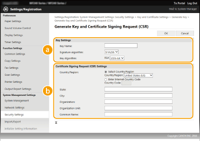 [Key and Certificate Settings].