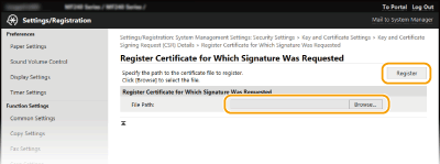 Kliknite [Browse], določite datoteko za zahtevo za podpis potrdila, nato pa kliknite [Register].