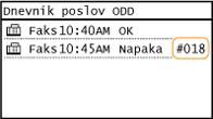 Če tiskanje ne uspe ali ne morete poslati ali sprejeti faksa ali skeniranega dokumenta ali če pride do druge napake, se na poročilu ali v sporočilu na zaslonu <Nadzor stanja> prikaže napaka v obliki trimestne številke (koda napake). Spodaj preverite vzroke in rešitve za posamezne kode napak. Za informacije o tiskanju poročila o napakah in o informacijah v poročilu glejte