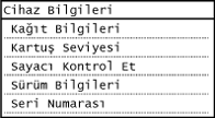 Kağıt boyu veya kartuşlarda kalan toner miktarı gibi makinenin durumunu görüntüler.