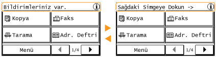 <Bildirimleriniz var.> veya <Sağda Simgeye Dokunun ->> iletileri görüntülendiğinde