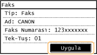 <Faks Numarası> veya <E-Posta Adresi> öğesine dokunun.