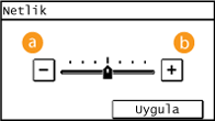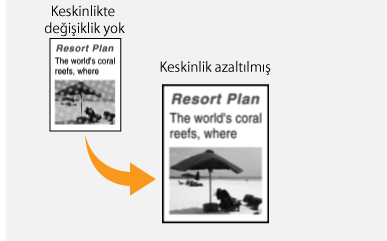 Kopyalanan görüntünün keskinliğini ayarlayabilirsiniz. Bulanık metinleri ve çizgileri keskinleştirmek için keskinliği artırın veya dergi fotoğraflarının görünümünü iyileştirmek için keskinliği azaltın.