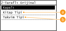 <Kitap Tipi> veya <Takvim Tipi> öğesini seçin