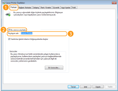 Bir yazdırma sunucusu kullanırken cihaz bilgileri elde etmek içinYazıcı sürücüsü kurulumu sırasında Canon Sürücü Bilgileri Yardımcı Hizmeti eklenmelidir. Daha fazla bilgi için bkz. "MF Sürücü Kurulum Kılavuzu".