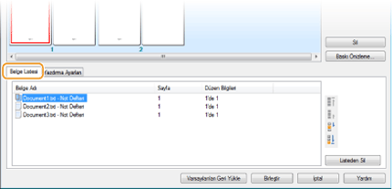 1. - 4. adımlarda eklenen belgeleri görüntülemek için [Belge Listesi] sekmesini tıklatın. Belgeleri listeden seçip [Listeden Sil] öğesini tıklatarak kaldırabilirsiniz.