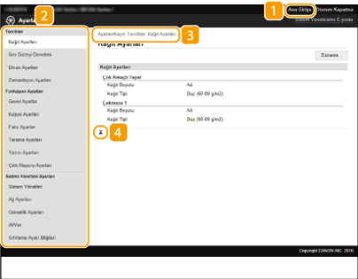 Yalnızca Sistem Yöneticisi Modunda oturum açtığınızda [Sistem Yönetimi Ayarları] alanını belirleyebilirsiniz.