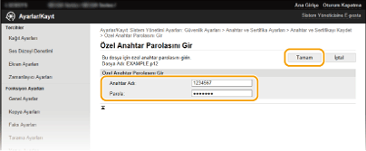 Anahtar çiftinin adını ve parolayı girin ve ardından [Tamam] öğesini tıklatın.