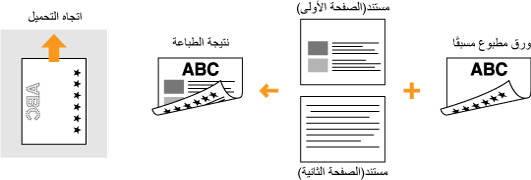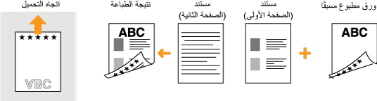 يصف هذا القسم بشكل أساسي كيفية تحميل الورق المطبوع مسبقًا مع توضيح التوجيه والاتجاه الصحيحين. وللحصول على وصف للإجراء العام الخاص بتحميل الورق في درج الورق أو في فتحة التغذية اليدوية، راجع تحميل الورق في درج الورق أو تحميل الورق في فتحة التغذية اليدوية.