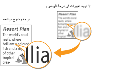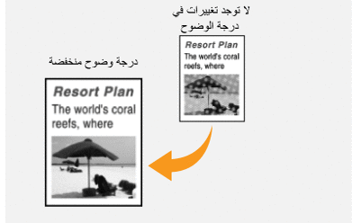 يمكنك ضبط وضوح الصورة المنسوخة. قم بزيادة الوضوح لتحسين النص والسطور الباهتة أو تقليله لتحسين مظهر صور المجلات.
