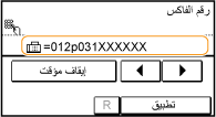 انقر فوق <إيقاف مؤقت> لإدخال فترة توقف في نهاية رقم الفاكس حسب الضرورة.