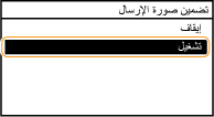 عند تحديد <تشغيل> أو <فقط عند حدوث أخطاء>، يمكن تضمين جزء من مستند الفاكس في التقرير. انقر فوق <تضمين صورة الإرسال> لضبطها على <تشغيل>.