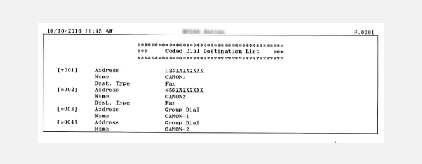 يمكنك التحقق من قائمة جهات الاتصال المسجلة في دليل العناوين كـ <الاتصال المرمز> و<لمسة واحدة> و<طلب مجموعة> من خلال طباعة قائمة دليل العناوين.