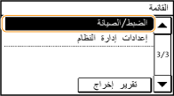 يتم سرد جميع الإعدادات الخاصة بالتعديل والصيانة مزودة بأوصاف موجزة. ويتم تمييز الإعدادات الافتراضية بشكل خنجر (  ).