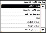 ![]() <حالة LAN اللاسلكية> و <معلومات آخر خطأ>