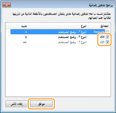 حدد مربع الاختيار لهندسة البت التي تعمل بها أجهزة الكمبيوتر الأخرى، ثم انقر فوق [OK] (موافق).