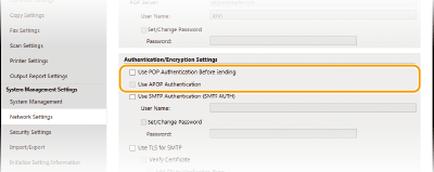استخدم Remote UI (واجهة المستخدم البعيدة) لتكوين إعدادات الإرسال التفصيلية كإعدادات لمصادقة POP وتشفير الاتصال قبل إرسال البريد الإلكتروني. اتصل بمسؤول الشبكة أو موفر الخدمة للتعرف على الإعدادات المطلوبة.