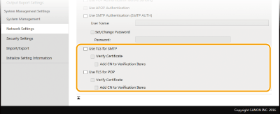 حدد مربع الاختيار لتشفير الاتصال مع خادم POP3 باستخدام TLS. حدد مربعي الاختيار [Verify Certificate] و[Add CN to Verification Items].