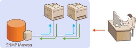 باستخدام SNMP، يمكن مراقبة معلومات إدارة الطابعة، مثل بروتوكولات الطباعة ومنافذ الطابعة، والحصول عليها بشكل منظم من خلال جهاز الكمبيوتر على الشبكة.
