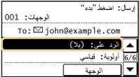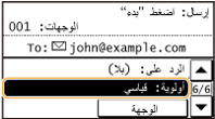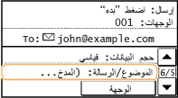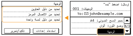 عند تحديد وجهات متعددة، يجب أن تكون الوجهة الثانية والوجهات التالية مسجلة في دفتر العناوين. ولإرسال نسخة أو نسخة مخفية، يمكنك فقط تحديد الوجهات المسجلة في دفتر العناوين. ولاستخدام دفتر العناوين، يجب استكمال إجراء التسجيل الضروري مسبقًا.