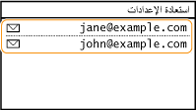 يمكنك تحديد أي وجهة من بين الوجهات الثلاثة السابقة. عندما تحدد وجهة مستخدمة سابقًا، يقوم الجهاز أيضًا بضبط نفس إعدادات المسح الضوئي، مثل الكثافة، التي استخدمتها في آخر مرة أرسلت فيها مستندات إلى هذه الوجهة.