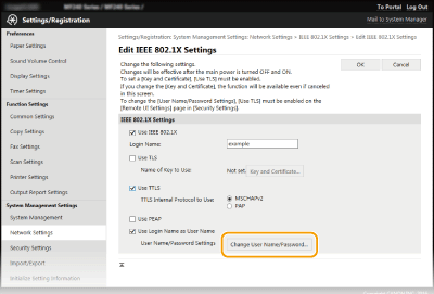 استخدام لوحة التشغيليمكنك أيضًا تمكين أو تعطيل إعدادات مصادقة IEEE 802.1X من <القائمة> في الشاشة <الرئيسية>. إعدادات IEEE 802.1X
