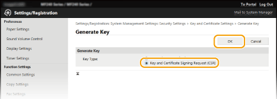 حدد [Key and Certificate Signing Request (CSR)] وانقر فوق [OK].