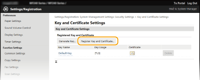 [Key and Certificate Settings] أو [CA Certificate Settings].