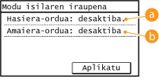 Modu isila ezarrita dagoeneanMakina modu isilean jartzean,
