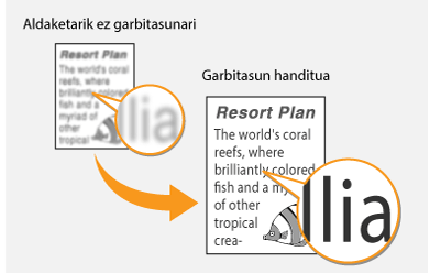 Kopiatutako irudiaren garbitasuna doitu dezakezu. Handitu garbitasuna testu edo lerro lausoak hobeto ikus daitezen, edo murriztu garbitasuna aldizkari argazkien itxura hobetzeko.