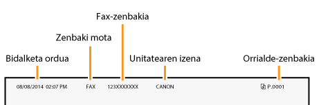 Erregistratu zure makinaren fax-zenbakia eta unitate-izena. Informazio hau makinatik bidalitako orrialde bakoitzaren goialdean agertzen da.