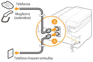 Konektatu telefono-kablea makinaren telefono-linea entxufeari (