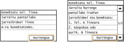 Jarraitu hurrengo prozedurari telefono-linea mota ezartzeko. Ez badakizu zein motatakoa den erabiltzen ari zaren telefono-linea, jarri harremanetan telefono hornitzailearekin. Baliteke <Hautatu linea mota> erabilgarri ez egotea makina erabiltzen ari zaren herrialdearen arabera.