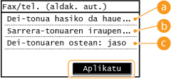 <Fax/telefonoa (aldaketa automatikoa)> hautatzen baduzu