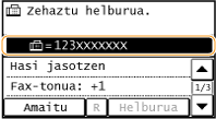 Kanpoko telefono bat edo aukerako mugikor bat makinara konektatuta badago, mugikorra hartu dezakezu <Eseki> ukitu beharrean.