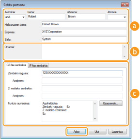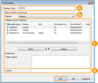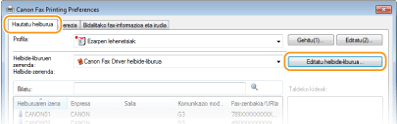 Atal honetan PC faxetarako hartzaileak helbide liburuan nola erregistratu behar diren azaltzen da. Helbide liburuan erregistratutakoen artean hartzaileak hauta ditzakezu hartzaile-talde bat sortzeko (taldeko markatzea), hau hainbat helbidetara aldi berean bidaltzeko erabilgarria delarik.