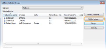 Erregistratutako helburuak aldatzeko edo ezabatzeko, hautatu helburu bat hemen [Helbide-liburua], eta sakatu [Editatu] edo [Ezabatu].