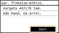Kargatu papera (A4/LTR edo handiagoa) eskuz elikatzeko erretenean eta ukitu <Hasi>.