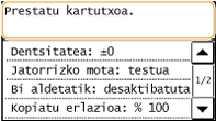 Makinan mezu bat agertuko da toner-kartutxoa ia hutsik dagoenean. Kontuan izan inprimatze-kalitatea okertuko dela ezer egin gabe inprimatzen jarraituz gero. Toner-kartutxoan gelditzen den kantitatea pantailan begira dezakezu.