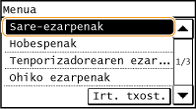 Asteriskoak (*)(*1) duten ezarpenek balio lehenetsi ezberdinak dituzte erabiltzen duzun ereduaren arabera.
